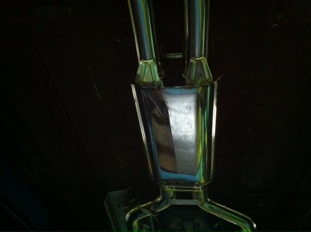 ↑作り直してくれたダウンパイプ(暗くてよく分からないですが・・・)。