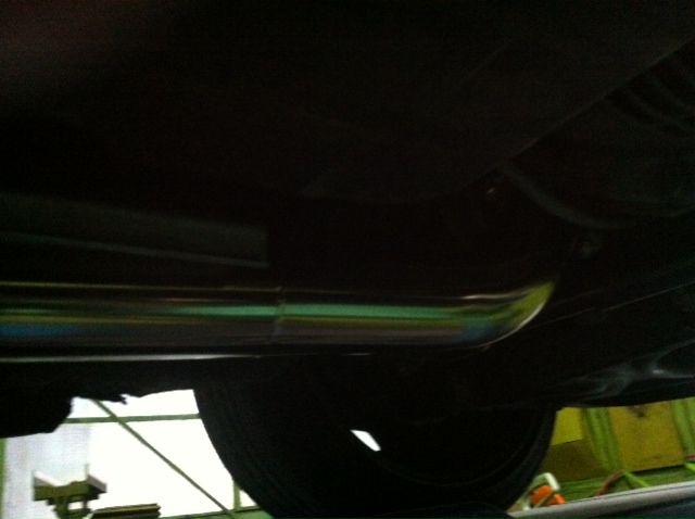 今まで車体の下からお漏らししていた排気音もこれで一件落着です。古い車にピカピカのパーツが付くとテンションが上がります!