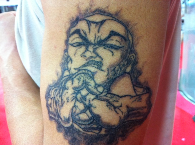 Tシャツをめくって見せてもらうと、そこにはなんと刃牙の異母兄弟の兄、凶悪そうなジャックハンマーがこっちにガンを飛ばしていますm(_ _)m