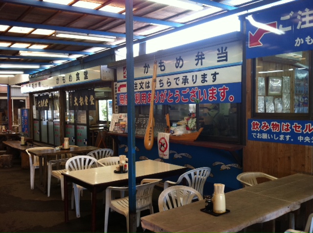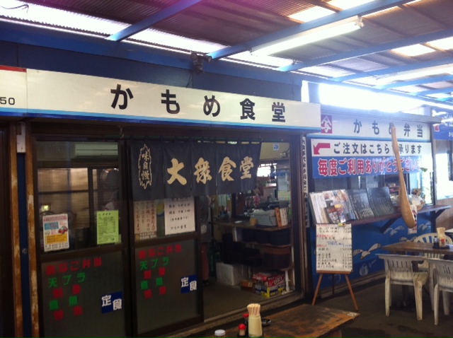 で、途中のかもめ食堂です。本当は丼からはみ出るアナゴ天丼にしようとも思っていたのですが、あまりの暑さに、さっぱりしたものをついつい選んでしまい、なんのひねりも無い刺身定食にしました…m(_ _)m