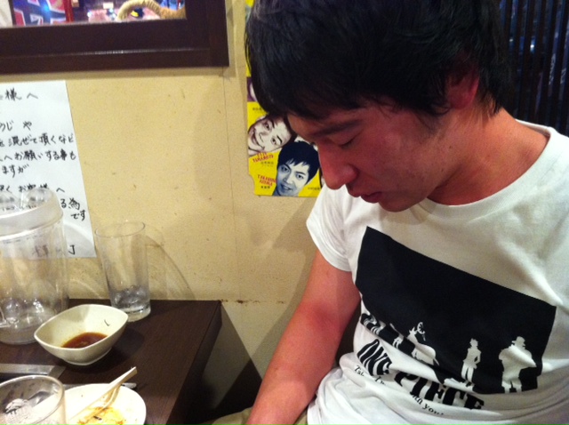 瓶ビールを頼んで、つまみはシイタケとギンナンの串焼きに冷奴です。