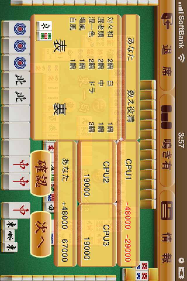 電車の中や、自宅で寝る前にするインターネット麻雀です。iPhoneでの麻雀はまだ始めたばかりなので楽しいです!