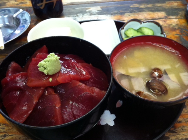 僕はまぐろのづけ丼↓950円也。木更津のハズレの場所にしては高いと思いましたが、厚いマグロの切り身がこれでもか!?という位入っていて満足度は高かったです。アサリの味噌汁にもアサリがこれでもか!?というくらいに入っていました~♪