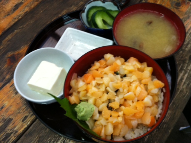 ふ○し君は性格を反映して子柱丼↓お漬物は冬瓜で小さな冷奴も付いて来ます。