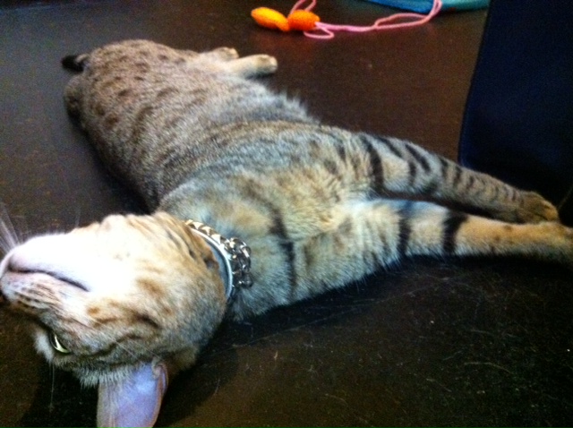 柴田さんは頑張って試合に勝ちましたが、ミャアは暑いのでゴロゴロしています・・・。