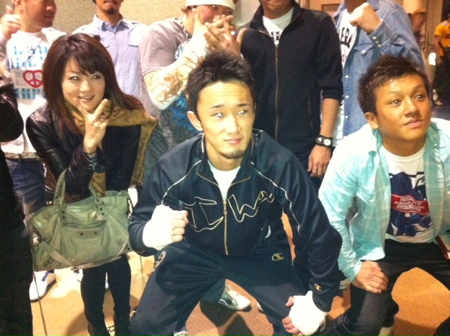 写真は会場に来られていた、RINGS前田日明(あきら)CEOと試合後の梅ちゃん。