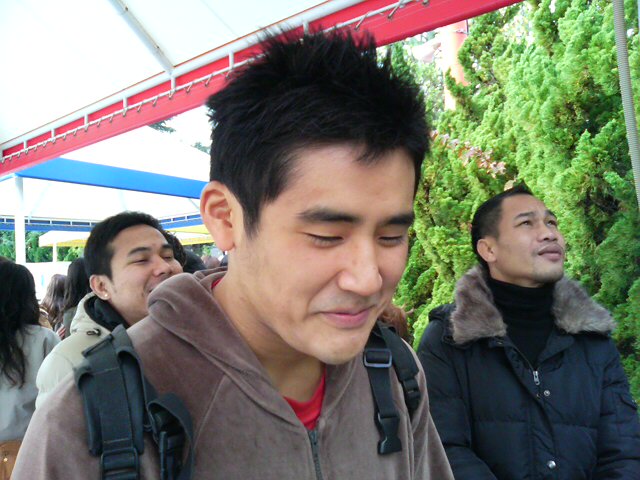 ↑女性ファン?に頼まれ一緒に写真を撮っていい気になっている前口君。