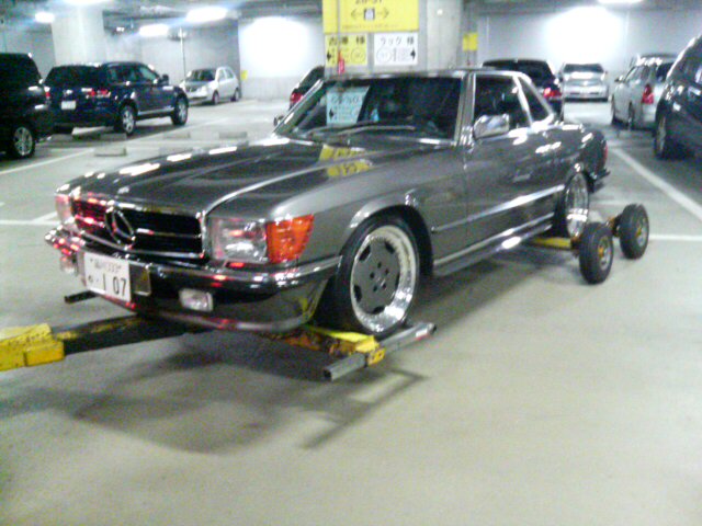 何年式ですか?と問うので85年式ですと答えると「僕の生まれた年とおんなじです!」と妙にハイテンションです。でも作業はテキパキと進めてくれて、あっという間に4輪とも持ち上げてくれて準備完了です!
