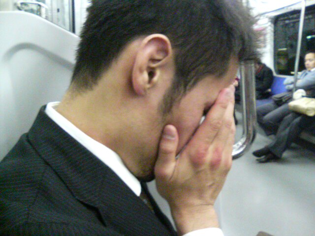 ↑辻堂の串揚げ屋さんで一緒に呑んでから、東海道線で帰る時に隣で喋っていましたが、酔っ払っているのでかなり眠そうです…目がイッチャッててまるで怒っているようです~♪