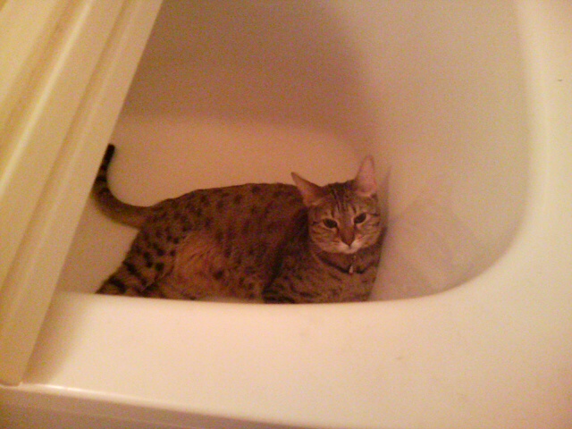 湯を張っている時は風呂蓋をしているので、お湯を抜くと興味シンシンで入って行きます。よくお昼寝もここでしているので、呼んでもなかなか来ない時は浴槽を見に行きます。