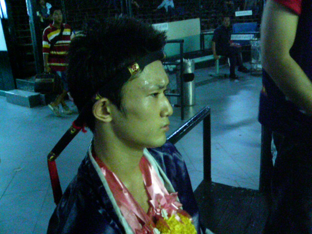 先に相手に左目じりの上を切られました・・・6針縫いました。でも、対戦相手はもっと縫っていました。