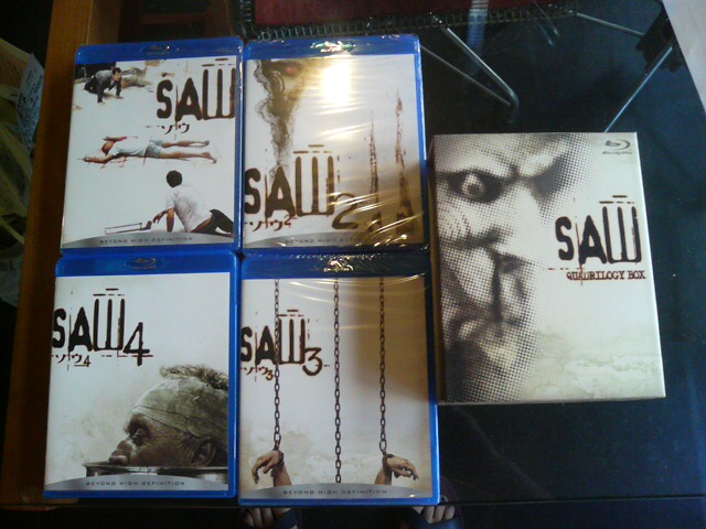 先日、大好きなアキバヨドバシをいつものようにウロウロしていたら、6FのDVD&CDコーナーの隅にある、お買い得品コーナーのガラスケースに鎮座しているSAWのブルーレイ4巻パックを発見!