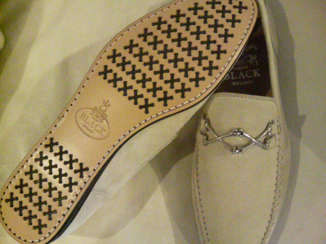 BARKER BLACKのブランドアイコンであるクロスボーンをビットのみならず、ソールの滑り止めまで全てにやっちゃった、やりすぎ感満載!の一品です。