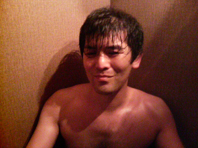 ↓で、控え室で試合の準備開始。まずPHOENIXのチーフトレーナーのビンさんにバンテージを巻いてもらいます。