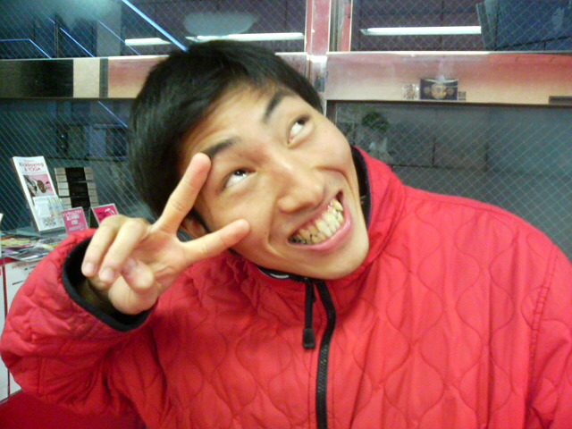 彼が注文した商品がなかなか来ないので、僕が「催促した方が良いよ」。で、ハチマキがカウンターに行ったら、注文を完全に忘れていたらしく「アイムソーリー」とか言われて、新しくサービスでもらったジュースとポテトをオーラゼロの佇まいで食べるハチマキです・・・。
