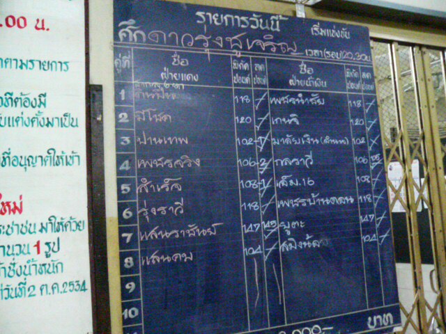 会場のラジャダムヌンスタジアムに着くまでも、チュワッタナジムから乗ったトゥクトゥクに途中の全然知らない場所で降ろされ、3人でトボトボ歩いていたが、なかなか着く気配ではないのでバス停で待っていた人に道を聞くと、「歩きじゃ無理!」とか言われてまたタクシーに乗りました・・・。