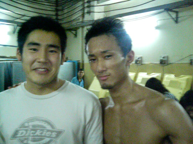 今回は(も)PHOENIXは抜群の連携プレーで、セコンド用具一式が手元にありませんでした。あったのはビンさんが持って来てくれた「モンコン」だけ・・・。