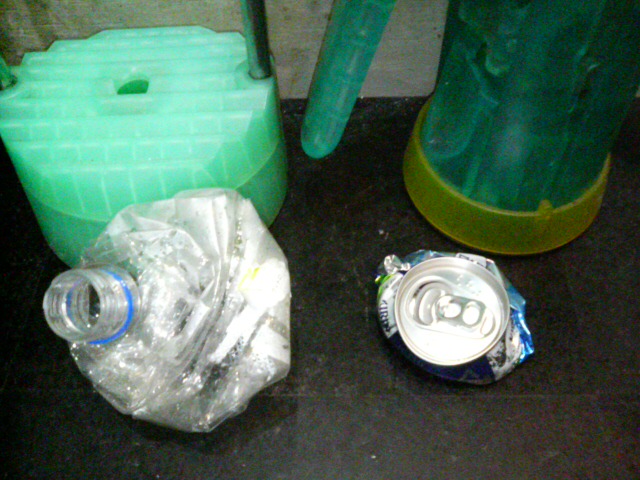 缶潰しマシーンとペットボトル潰しマシーンです。