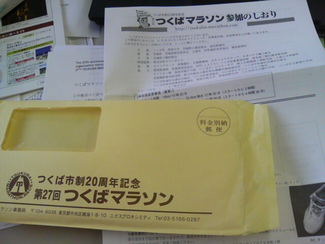 とうとう11月25日の「つくばマラソン」の参加票が届きました・・・。