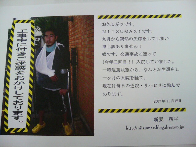 今は毎日病院へリハビリに通い、必要に応じて検査等をしているそうです。早く完治してもらいたいです。