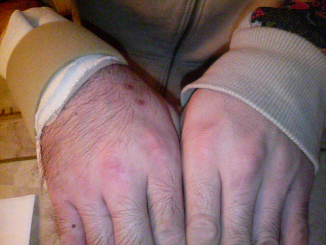 で、本人は無邪気に怪我した右手の毛が濃くなってきましたよ~♪と青白い顔でニコニコしながら言うので、証拠写真を撮りました。