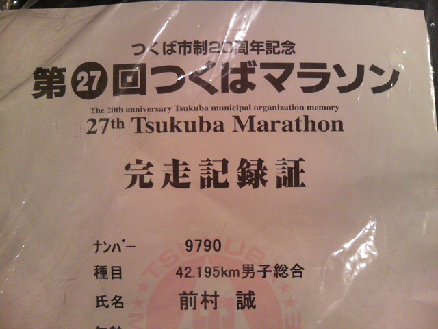 おかげさまで、今日開催された「つくばマラソン」を完走する事が出来ました~♪
