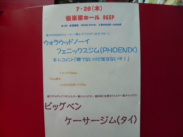 PHOENIXの誇るタイ人トレーナーの1人、ウアン先生(本名ウォラウッド)が7月26日(木)後楽園ホールで開催される、「DEEP GLOVE」でキックルールの試合を行います。