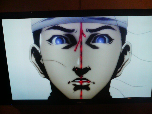 アニメのファーストシーン。藤木源之助の額から血が・・・。