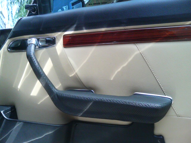 先日、SL君のドアの取っ手をパンチングメッシュの革で上張りしました!