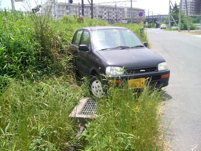 車の後ろが既に雑草の中に潜り込んでいます・・・。
