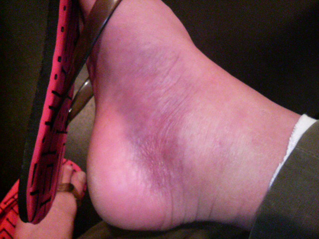 私「足首の周りが紫になって腫れてきているのですが、なぜですか?」。