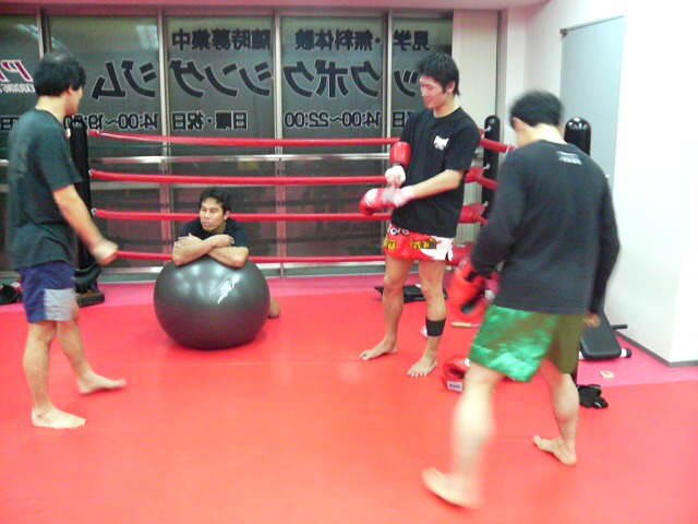 写真は、ボクシングのマススパーをしている「大蔵PHOENIX1号」と、ジムのグローブ盗難疑惑の大+、です。