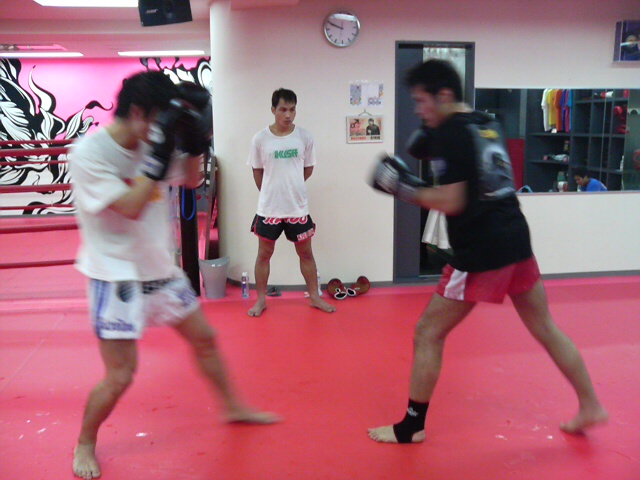 写真は大晦日のチェ・ホンマン戦に向けてスパーリングに励むボビーさんと、それを心配そうに見守る彼女の押切さんです…(-_-;)