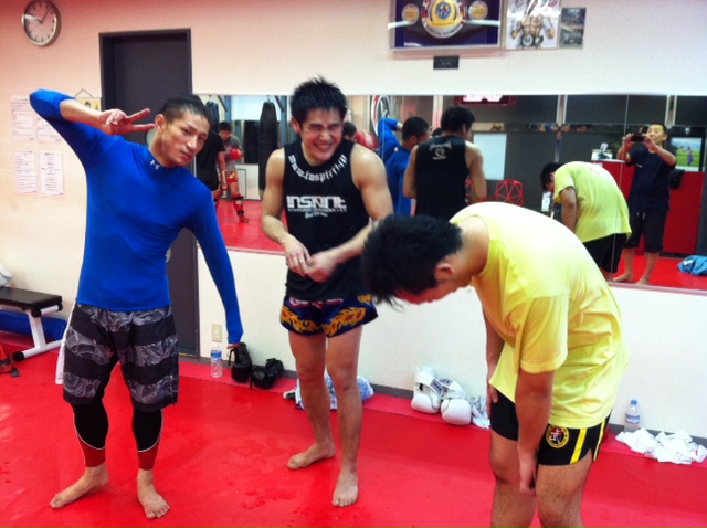 練習中に天才!宮本先生(リングネーム)をイジる二人。とてもリラックスしています~♪