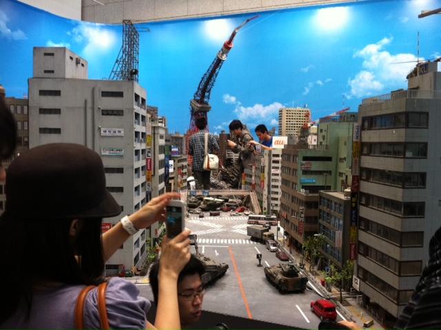 ↑破壊された東京タワーの前で記念撮影をするのに30分待ちと聞いて挫折しました・・・。