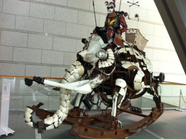 ↑同じくロビーに展示されていた芸術作品「ロッキングマンモス」高さは3m以上あります!マンモスの足の下は鉄骨を曲げて使用しています。迫力あります。