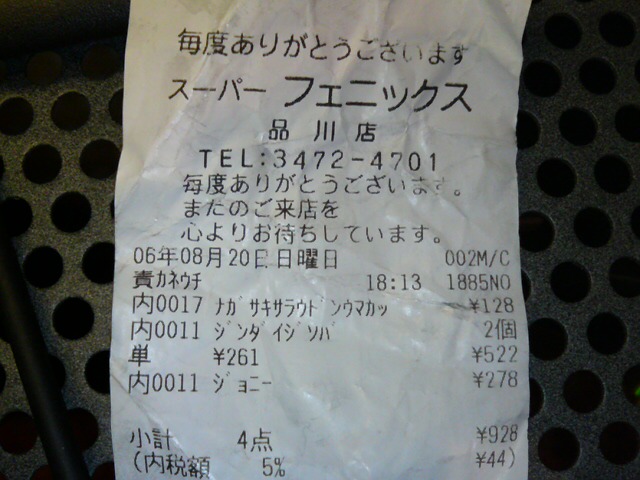 なになに、長崎皿うどん126円一個、深大寺そば261円二個で522円。僕は基本的に自炊しないので、食料品を買うはずもない…。