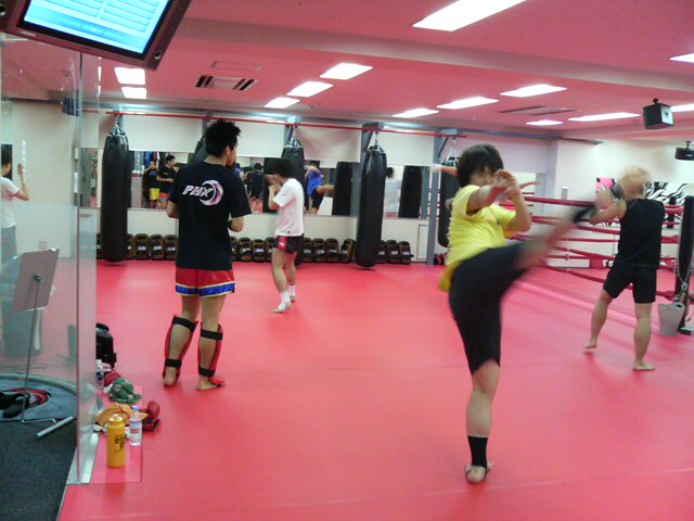 中村クラスの写真手前はヨッシーこと、I田さんの華麗なるハイキックです(^^)v