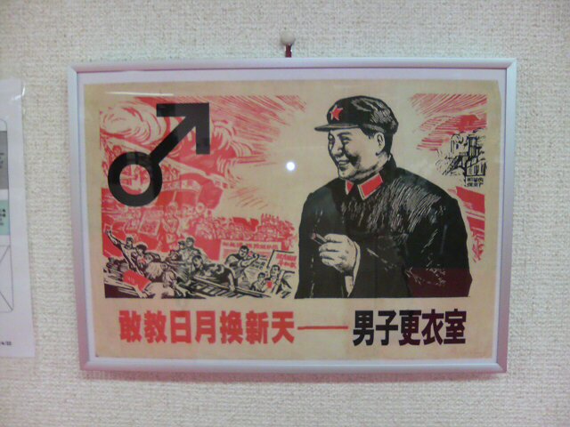 の入り口にある、故毛主席のプチポスターです。